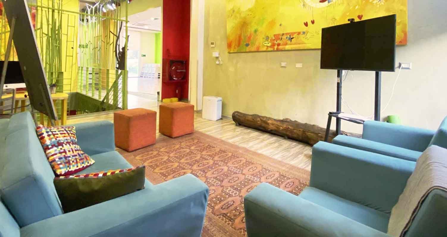 Espacio Terra dispone de un lounge cómodo que funciona como sala de espera, área de encuentro o espacio flexible, además de espacios multifuncionales que pueden adaptarse a distintos usos según el tipo de evento.